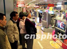 在王府井東方新世界商場(chǎng)里,商場(chǎng)的電視大屏幕上正在播放中央電視臺(tái)關(guān)于伊拉克戰(zhàn)火的最新報(bào)道,許多顧客聚集在電視大屏幕前觀看。北京平安保險(xiǎn)公司的職員魏素蘭告訴記者,她這幾天一直都在關(guān)注著伊拉克局勢(shì),“戰(zhàn)爭(zhēng)會(huì)使伊拉克平民顛沛流離,使更多難民無(wú)家可歸,也會(huì)給更多的家庭造成不幸,”魏素蘭說(shuō),“我希望這場(chǎng)戰(zhàn)爭(zhēng)明天就結(jié)束!