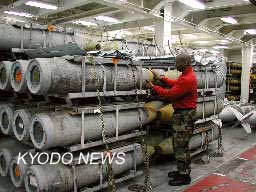報道說,記者們在被帶到位于船艙底下四層和五層的彈藥庫時看到,里面排滿了2000磅(約900公斤)、1000磅、500磅的炸彈。