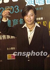 歌星王杰3月28日在香港出席“Neway一夜情歌王杰演唱會(huì)”記者會(huì)。是次演唱會(huì)將以“一夜情歌”作主題會(huì)歌迷,以獨(dú)特風(fēng)格,為歌迷帶來驚喜,圖為王杰為預(yù)祝個(gè)唱成功舉杯。鄧慶樂 攝