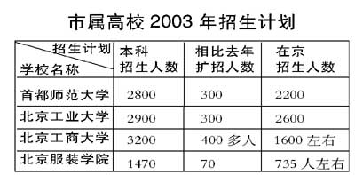 中新網(wǎng)3月30日電 據(jù)北京娛樂(lè)信報(bào)報(bào)道,二十所部屬、市屬高校今年在京招收的本科人數(shù)已經(jīng)確定。今年,部屬院;旧隙疾粩U(kuò)招,市屬高校則適當(dāng)擴(kuò)招。招生人數(shù)詳見(jiàn)右表。