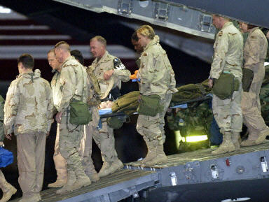 3日,圖為19歲的美軍女士兵杰西卡·林奇乘美軍用運(yùn)輸機(jī)到達(dá)美軍駐德國(guó)的拉姆斯汀基地。