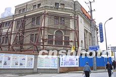 歷史悠久的上海音樂廳本月即將整體平移,平移距離約六十六點(diǎn)四米,并整體抬升三點(diǎn)三八米。圖為三日正在施工中的上海音樂廳。作者:湯彥俊