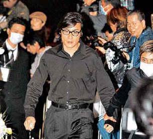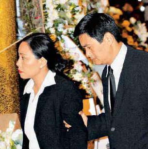 身穿黑西裝的“唐唐”,昨午二時與陳淑芬及其它親友,如張的長姊及姊夫麥法誠等已抵達殯儀館,他顯得神情哀傷,雙眼紅腫,大有欲哭無淚的感覺,在整個晚上,唐則不停抹眼淚,令旁人亦替他心酸。在昨午五時許,約五十名記者獲安排在靈堂向張致祭,但家屬嚴格規(guī)定不準拍照,所有攝影器材均要留在外面。而唐與張的胞姊張綠萍均在主家席位鞠躬回禮。