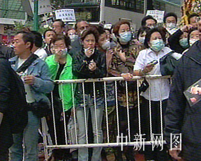 中新網(wǎng)4月8日電 香港著名藝人張國榮8日中午舉殯,近千名歌迷影迷冒雨在殯儀館外,目送“哥哥”的靈柩由靈車送往火葬場火化。