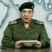 中新網(wǎng)4月8日電 伊拉克的電視節(jié)目經(jīng)常出現(xiàn)伊拉克的新聞部長薩哈夫。薩哈夫通常站在攝象機前,面露微笑,頭戴貝雷帽,宣布伊拉克軍隊頑強抵抗或勝利的消息。