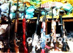 <div=left>中緬警方合作摧毀金三角一毒品加工廠,緬甸警方清理登記繳獲的槍支彈藥。作者:張磊