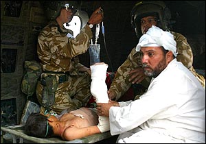 三天前,阿里對(duì)泰晤士報(bào)記者說,他最喜歡的學(xué)科是地理,因?yàn)樗肼眯。昨天他忍著巨大的疼痛轉(zhuǎn)頭向他叔叔問:“我是不是很快就能旅行了?”他叔叔說他不但很快就能旅行,而且還能去捕魚。阿里家住巴格達(dá)東南部,在一次轟炸中他的床單著火,他自己火燒傷。在這次事故中,他的父母也雙雙死于這次襲擊,當(dāng)時(shí)他母親已經(jīng)懷孕5個(gè)月。另外,他的兄弟和幾個(gè)姐妹也遇難。