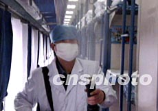 為嚴(yán)防非典型肺炎通過交通工具傳播,中國(guó)鐵路、交通部門要求客運(yùn)站和車船必須堅(jiān)持每天徹底打掃衛(wèi)生和消毒;全封閉空調(diào)客車在運(yùn)行過程中,空調(diào)系統(tǒng)要處于強(qiáng)制通風(fēng)狀態(tài)。中新社圖