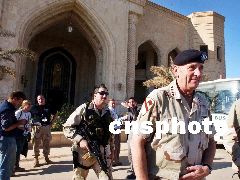 4月16日,美軍伊拉克戰(zhàn)場總指揮弗蘭克斯將軍(右)走訪了戰(zhàn)后的伊拉克首都巴格達(dá),視察美軍的部署情況。Ic/cnsphoto 攝