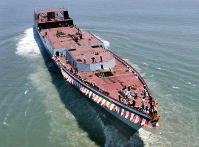 中新網4月18日電,據路透社消息,4月18號,印度第一艘隱形戰(zhàn)艦——什瓦力克號(Shivalik),在孟買軍港下水。