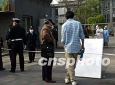 北京人民醫(yī)院二十四日上午作為首批受非典性肺炎污染的醫(yī)院,成為首批被隔離的區(qū)域。作者:滿會(huì)喬