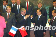 中國國務(wù)院總理溫家寶與法國總理拉法蘭四月二十五日在北京人民大會(huì)堂舉行會(huì)談,并出席雙方簽署關(guān)于中國購買三十架空中客車飛機(jī)的總協(xié)議簽字儀式。作者:毛建軍
