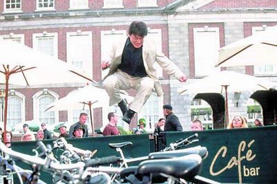 中新網(wǎng)4月28日電 據(jù)信息時(shí)報(bào)報(bào)道,由美國哥倫比亞公司投資,香港導(dǎo)演陳嘉上導(dǎo)演的成龍新片《不死人》(High Binders)將于8月15日全球首映。近日,美國媒體登出了成龍?jiān)谂臄z該片時(shí)的現(xiàn)場(chǎng)照,從照片上看,成龍?jiān)谂臄z一場(chǎng)打斗戲,吊著鋼絲的他在人群中上躥下跳。有趣的是,成龍?jiān)诮邮苊襟w采訪時(shí)透露,在影片結(jié)尾他有一場(chǎng)熱烈的接吻戲,這是他30年的銀幕生涯的第一次。