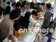 廣州電信“小靈通”業(yè)務(wù)從四月二十九日開始放號,由于該業(yè)務(wù)資費(fèi)便宜,首日放號就吸引了大批市民前來咨詢選購。作者:柯小軍