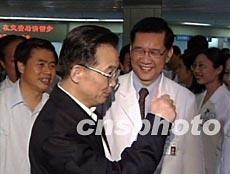 隨后,溫家寶來到廣東省人民醫(yī)院看望了醫(yī)務(wù)人員。他說,廣大醫(yī)務(wù)工作者在這次抗擊“非典”的斗爭(zhēng)中做出了重大貢獻(xiàn)。他們臨危不懼,舍生忘死,無私奉獻(xiàn),救死扶傷,表現(xiàn)出高尚的革命情操和人道主義精神。祖國(guó)和人民是不會(huì)忘記的。他要求各級(jí)政府要格外關(guān)心醫(yī)務(wù)人員的身心健康,要進(jìn)一步改善他們的工作和生活條件,大力宣傳他們的先進(jìn)事跡。