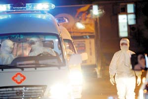 晚上11時,兩名全身武裝的醫(yī)生和兩名司機上了兩輛隔離車,隔離車迅速啟動,這兩輛開往地壇醫(yī)院的隔離車出發(fā)了。接著,其他醫(yī)務(wù)人員也鉆進隔離車,開往北醫(yī)三院的5輛隔離車也開動了。晚上11時30分許,35輛隔離車全部出發(fā),另外兩輛備用隔離車也停在京昌路上隨時等候調(diào)遣。