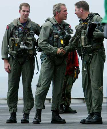 暗藏玄機(jī)之四,布什政府未來行動(dòng)之四:布什乘戰(zhàn)機(jī)上航母做演講這一系列動(dòng)作顯然還有明顯的國(guó)內(nèi)政治意圖。美國(guó)《紐約時(shí)報(bào)》聲稱,讓布什上航母演講除了是撈最大程序的政治影響之外,沒有其它的解釋。布什總統(tǒng)被充滿笑臉的美國(guó)大兵包圍的情景顯然是2004年競(jìng)選連任最佳的布景。勑路迹