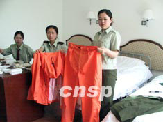 以往的“五一節(jié)”都是熱熱鬧鬧,今年卻是格外寧靜,象大戰(zhàn)前的寂靜。午夜,第一批病人將由佑安、地壇、北大等13所醫(yī)院轉(zhuǎn)入小湯山,我們負(fù)責(zé)所有病員信息的收錄及病員的轉(zhuǎn)送。此時此刻,每個姐妹心潮澎湃。夜幕剛剛落下我們便開始緊張地準(zhǔn)備了,為了確保自身的安全,我們要穿三層隔離服、隔離鞋襪,還要戴護目鏡和三個16層的棉紗口罩才能接觸病人。室外氣溫32度,第二層防護服剛一上身便被汗水緊緊吸附在身上,厚厚的口罩下鼻子和嘴貪婪地呼吸著。著裝完畢,只覺得眼前一陣發(fā)暈,汗如雨下。一位姐妹笑著說:我從小就想攀登珠穆朗瑪,今天這種感覺終于找到了。