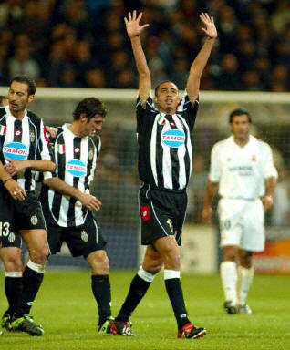 比賽僵局在第23分鐘打破,羅納爾多在禁區(qū)外得球之后,突然起腳射門(mén),尤文圖斯門(mén)將布馮撲救不及,皇馬拔得頭籌。不過(guò),在在上半場(chǎng)結(jié)束前,特雷澤蓋為尤文圖斯打入一球,將比分扳平。