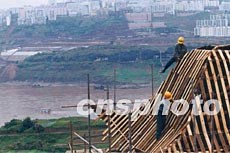 長(zhǎng)江三峽庫(kù)區(qū)張飛廟搬遷在建,將在七月一日開放。云陽(yáng)縣新建的張飛廟,是在舊廟位置沿江上溯32公里處的南岸石盤鎮(zhèn)龍安村獅子巖下建成,其基址保持了原廟依山臨江及與縣城隔江相望的特征。作者:孫榮剛