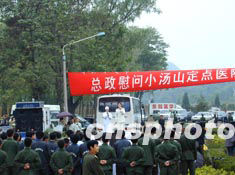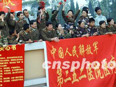 十四日,解放軍總政歌舞團到北京小湯山“非典”定點醫(yī)院慰問醫(yī)護人員,受到熱烈歡迎。作者:安然