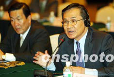 博鰲亞洲論壇SARS與亞洲經(jīng)濟(jì)--影響評(píng)估與政策建議研討會(huì)十四日在北京結(jié)束,泰國(guó)駐華大使敦.帕瑪威奈在會(huì)上演講。中新社記者:毛建軍