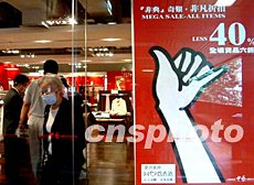 非典型肺炎的負(fù)面影響,令香港百貨零售業(yè)深受打擊,而專售高檔服飾的商店為逆市自救,不惜以“非典奇艱,非凡折扣”的減價(jià)口號招徠顧客。作者:洪少葵