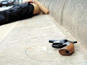 中新網(wǎng)5月18日電 昨日凌晨5時(shí),駕駛著一輛黑色皇冠轎車(chē),四名亡命歹徒攜帶兩把手槍和三把馬刀,從深圳布吉鎮(zhèn)出發(fā),經(jīng)平湖至光明農(nóng)場(chǎng)一路瘋狂行搶。昨日凌晨7時(shí)30分,在寶安區(qū)觀(guān)光公路育新學(xué)校路段,正在實(shí)施搶劫的歹徒,遭遇寶安便衣民警伏擊,經(jīng)過(guò)約5公里的飛車(chē)追逐和激烈的槍?xiě)?zhàn)后,一名歹徒被當(dāng)場(chǎng)擊斃,3名歹徒被警方抓獲———