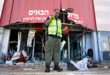 以色列北部城鎮(zhèn)阿富拉一購物中心5月19日發(fā)生大爆炸。有三人在爆炸中死亡,近50人受傷,其中13人傷勢較重。這是一起自殺襲擊事件,也是兩天內(nèi)在以色列發(fā)生的第五起爆炸事件。