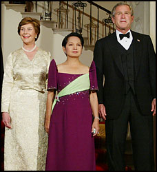 阿羅約目前正在美國進(jìn)行國事訪問,她是布什上任以來第一位對美進(jìn)行國事訪問的亞洲國家領(lǐng)導(dǎo)人。