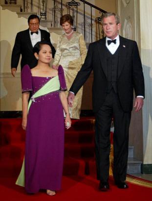 中新網(wǎng)5月20日電 據(jù)《華盛頓郵報》報道,布什總統(tǒng)在白宮為正在對美國進(jìn)行國事訪問的菲律賓總統(tǒng)阿羅約舉行了國宴。這是布什為來訪的國家元首舉辦的第三場國宴,布什一般傾向于與來訪外國元首舉行非正式的宴會。