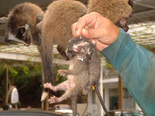 報(bào)道稱,近年來(lái),中國(guó)一些地區(qū)食用果子貍蔚然成風(fēng),市場(chǎng)對(duì)商品果子貍的需求量劇增,商品果子貍價(jià)格更不斷上漲。果子貍?cè)庖恢北灰暈殡y得的山珍野味和滋補(bǔ)佳品,被人們推崇為山珍之首。