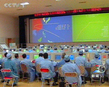 衛(wèi)星發(fā)射升空后,科研人員在地面進(jìn)行數(shù)據(jù)觀測。