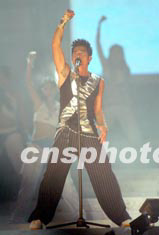 歌星郭富城5月24日出席香港大球場茁壯行動“1:99音樂會”慈善演唱。中新社傳真 鄧慶樂 攝