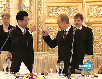 胡錦濤在發(fā)言時(shí)說(shuō):“雖然訪問(wèn)還沒(méi)有結(jié)束,但我感到,這次訪問(wèn)是成功的,已經(jīng)取得了重要成果!彼蜒(qǐng)普京總統(tǒng)在明年方便的時(shí)候訪問(wèn)中國(guó)。