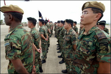 (三)向其盟國展示武器裝備,為美國軍火商推銷武器做廣告。如果說,戰(zhàn)場是美國軍火商最大的武器推銷場,那么,演習(xí)場就是美國軍火商的第二大武器推銷場。海灣戰(zhàn)爭讓美國軍火商掙足了鈔票,科索沃戰(zhàn)爭又讓美國軍火商們大撈了一把,戰(zhàn)爭已經(jīng)成為美國兜售武器的最佳時機,這似乎已成為美國屢試不爽的法寶。然而,在沒有戰(zhàn)爭的和平時期,演習(xí)場就成了美國最好的武器推銷場。近幾年,亞太一些國家為實現(xiàn)軍隊現(xiàn)代化投入了巨資,這樣一個難得的軍火出售機會,美國是絕不會放過的。通過“金色眼鏡蛇”演習(xí)美國將向其盟國展示其武器裝備的優(yōu)越性能,以引起這些國家的濃厚興趣,為美國軍火商在亞太軍火市場占有更大的份額打下基礎(chǔ)。(聞新芳)
