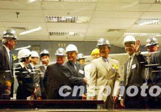 香港九廣鐵路公司主席田北辰,6月2日帶領(lǐng)嘉賓參觀竣工的南昌站大堂控制室,該站是地鐵網(wǎng)絡(luò)的一個全新車站,將于2003年秋季投入服務(wù)。