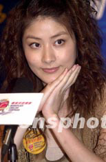 歌星陳慧琳6月2日在香港出席“職業(yè)英語運(yùn)動(dòng)2003”記者會(huì)。中新社記者 鄧慶樂