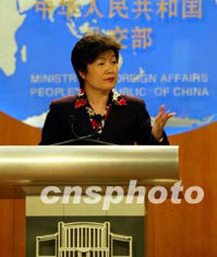 中國外交部發(fā)言人章啟月六月五日就國家主席胡錦濤首次出訪、美以巴三方會晤、尼泊爾警方近日遣返中國非法移民等問題回答記者提問。中新社記者:滿會喬