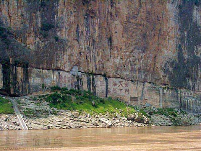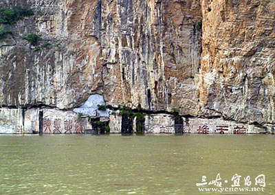 “夔門自古天下雄”。作為三峽門戶的夔門,長江在這里驟然變窄,巍峨高聳的赤甲山,絕壁千仞的白鹽山,共同夾出了以雄著稱的夔門,峽口處江面寬不到百米,最窄處僅50米。在白鹽山千仞絕壁上,從宋代至民國初年歷代詩仙詞圣留下了十余幅石壁題刻,總面積為500余平方米,大體在海拔115至119米之間。三峽蓄水后,摩崖石刻也就永遠(yuǎn)的消逝了。跑了一輩子川江的老船長羅獻(xiàn)銀老人就住在這里。