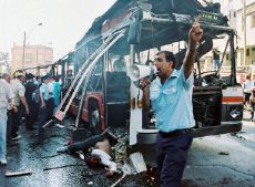 目瞪口呆的目擊者唐妮-扎登告訴記者說:“先是聽到一聲巨響,然后就看到公共汽車被炸成了碎片,14路公共汽車在達維達卡廣場附近的海法路爆炸!