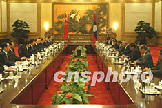 胡錦濤高度評價中老關系。他說,近年來,中老睦鄰友好合作關系保持著良好的發(fā)展勢頭,雙方認真落實二000年兩國最高領導人互訪時達成的共識和指導雙邊關系發(fā)展的《聯(lián)合聲明》,為推動兩國關系全面深入發(fā)展做了許多扎實工作,取得豐碩成果。