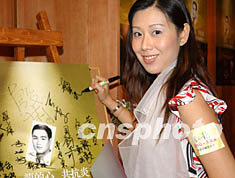 曾獲香港國際親善小姐稱號的殷莉,六月十四日出席在香港舉行的「龍的心、共抗炎,李小龍慈善珍藏電話卡公開發(fā)行」活動。錢興強 攝