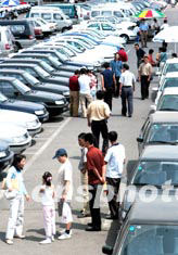 六月中旬,北京市民攜家?guī)Э谠诒狈狡囀袌?chǎng)選購汽車。車市層出不窮的新面孔和經(jīng)濟(jì)型轎車的價(jià)格一降再降,極大地刺激著消費(fèi)者的購車欲望,使北京各汽車銷售市場(chǎng)又出現(xiàn)年初如火如荼景象。中新社記者:王麗南