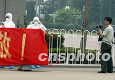 解放軍小湯山醫(yī)院將在20日送走最后一批SARS康復(fù)患者后結(jié)束光榮使命,18日軍方攝影師在隔離區(qū)認(rèn)真記錄該醫(yī)院的最后時刻。中新社記者:任晨鳴