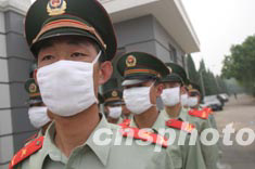 隨著最后一批SARS患者的康復出院,北京小湯山醫(yī)院圓滿完成歷史使命,擔負醫(yī)院警衛(wèi)任務(wù)的武警戰(zhàn)士也準備撤離。中新社記者:史利