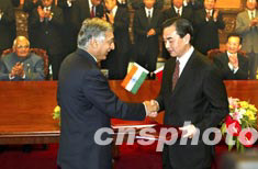 溫家寶說(shuō),我們今天將簽署的《中印關(guān)系原則和全面合作宣言》,是一份綱領(lǐng)性文件,它將確立中印關(guān)系的目標(biāo)和指導(dǎo)原則,全面規(guī)劃兩國(guó)在各個(gè)領(lǐng)域的合作。它標(biāo)志著中印關(guān)系進(jìn)入一個(gè)新的發(fā)展階段。