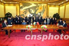 中國總理溫家寶與印度總理瓦杰帕伊二十三日上午在北京人民大會堂舉行會談,并出席中印關于簡化簽證手續(xù)的諒解備忘錄等九個文件的簽字儀式。中新社記者:毛建軍