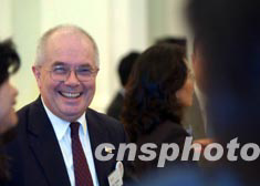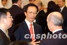 香港財政司司長梁錦松,6月24日在禮賓府特設的酒會上,與六家在香港新設或擴充業(yè)務的海外投資商交談甚歡。 中新社記者 洪少葵