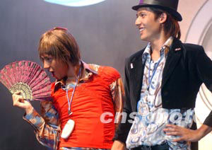 香港樂壇人氣偶像BOYZ,六月二十五日晚在諾基亞香港舉行的產(chǎn)品發(fā)布會上,擔任諾基亞3300宣傳大使。 中新社記者 錢興強